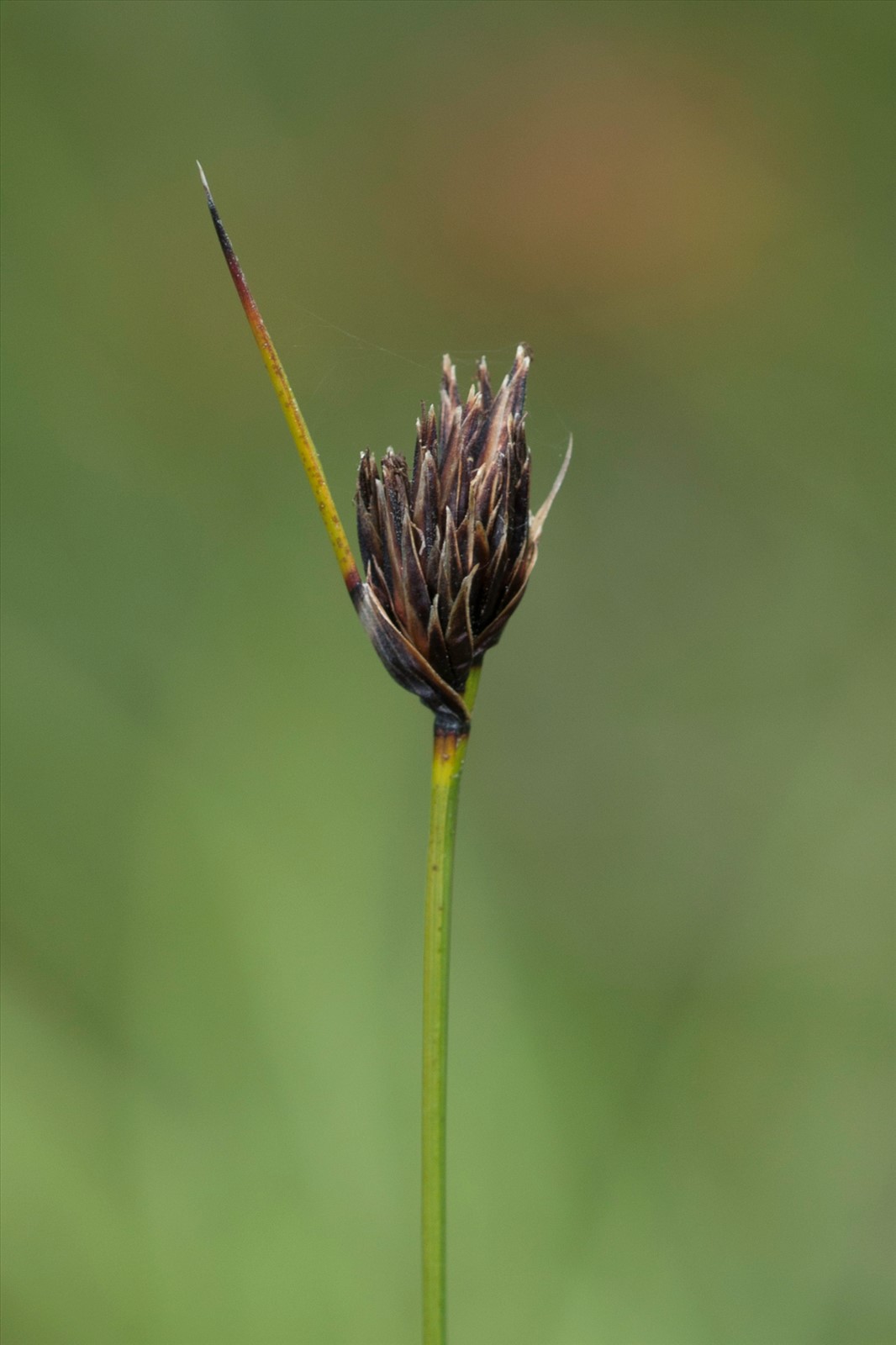 Plante vivace de 20-80 cm, glabre, à souche courte fibreuse gazonnante ; tiges nombreuses, raides, cylindracées, lisses, nues, munies à la base de 2-3 feuilles à gaines noires luisantes ; feuilles raides, filiformes-canaliculées (à peine 1 mm de large), allongées, dépassant le milieu de la tige ; épillets 5-12, lancéolés, réunis en tête ovale, dense, brun noirâtre, dépassée par la bractée inférieure obliquement dressée ; écailles lancéolées mucronées ; akène blanc, ovoïde-subtrigone, mucroné, à soies très petites ou nulles.