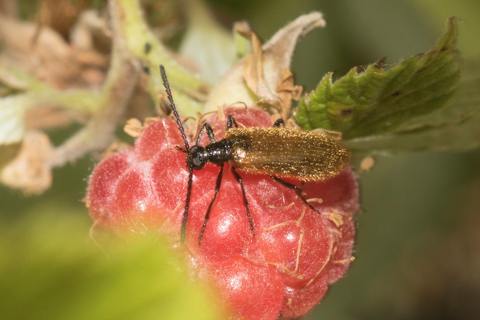 Se distingue de Lagria hirta, qui a un écusson brun, par son écusson noir. Ce coléoptère possède des élytres roux couverts d’une pilosité hérissée. L'adulte se nourrit de différentes feuilles de plantes alors que la larve se nourrit de végétaux en décomposition. Le mâle adulte possède de plus grand yeux que la femelle.