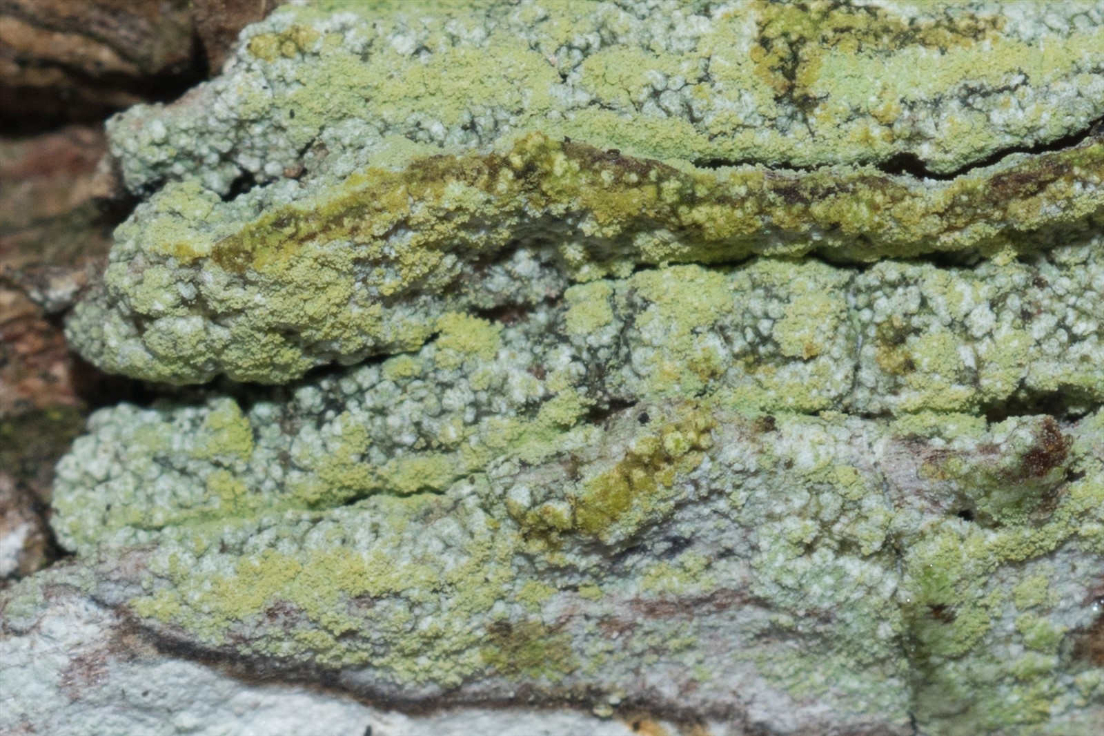 Ce lichen se trouve sur la face Est des troncs d'arbres plus ou moins isolés. Il est reconnaissable par ses nombreuses soralies jaunâtres. Il réagit à K et C en jaune.