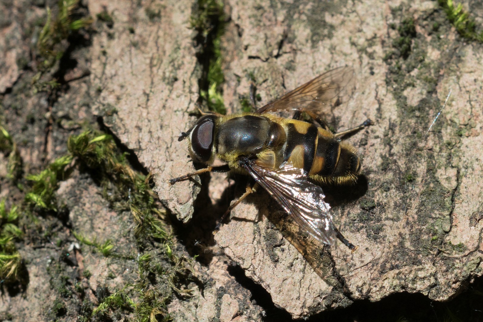 Ce syrphe se distingue par un dessin de tête de mort sur son thorax. Il possède une pilosité jaune sur les côtés de son corps. Sa taille dépasse le centimètre. On le retrouve plus particulièrement dans les zones boisées. Les larves se développent dans les infractuosités humides des arbres.